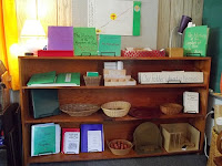 And now I can say, "ok, next week I will present the Plan of God to the level 3 children and follow their interests from there. But for all the children, for the next 2-3 weeks we are going to look at geography of Israel appropriate to each child's level; and we are going to pull together the pieces we have of the Mass so that the older children are ready to work with the level 3 Mass charts if interest directs them there right away (otherwise we'll get to it later in the year) and the younger children can come together for the Synthesis of the Mass." Do I know precisely what I am going to show each child on each day? Not a chance! They might be sick or otherwise absent; or so in deep with another work that I won't take them away from it. So I will work with the children who are present at the time, inviting them to spend their work time selecting previously presented materials that meet their current needs. And over the course of the month all will be accomplished. :)